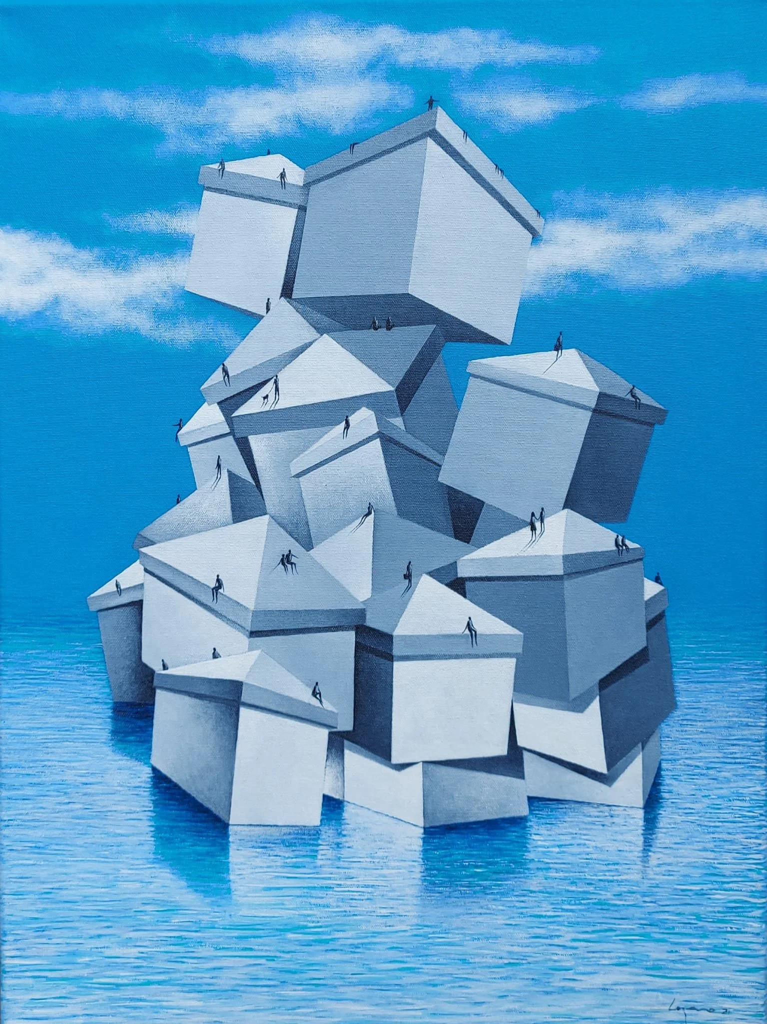 For Lozano, the limit of what is known represents the frontier of discovery. Havana-born Lozano illustrates the commonplace aspects of his culture and uses it as an anchor, grounding himself in the known, while journeying into the unknown, on the other side of the horizon line.