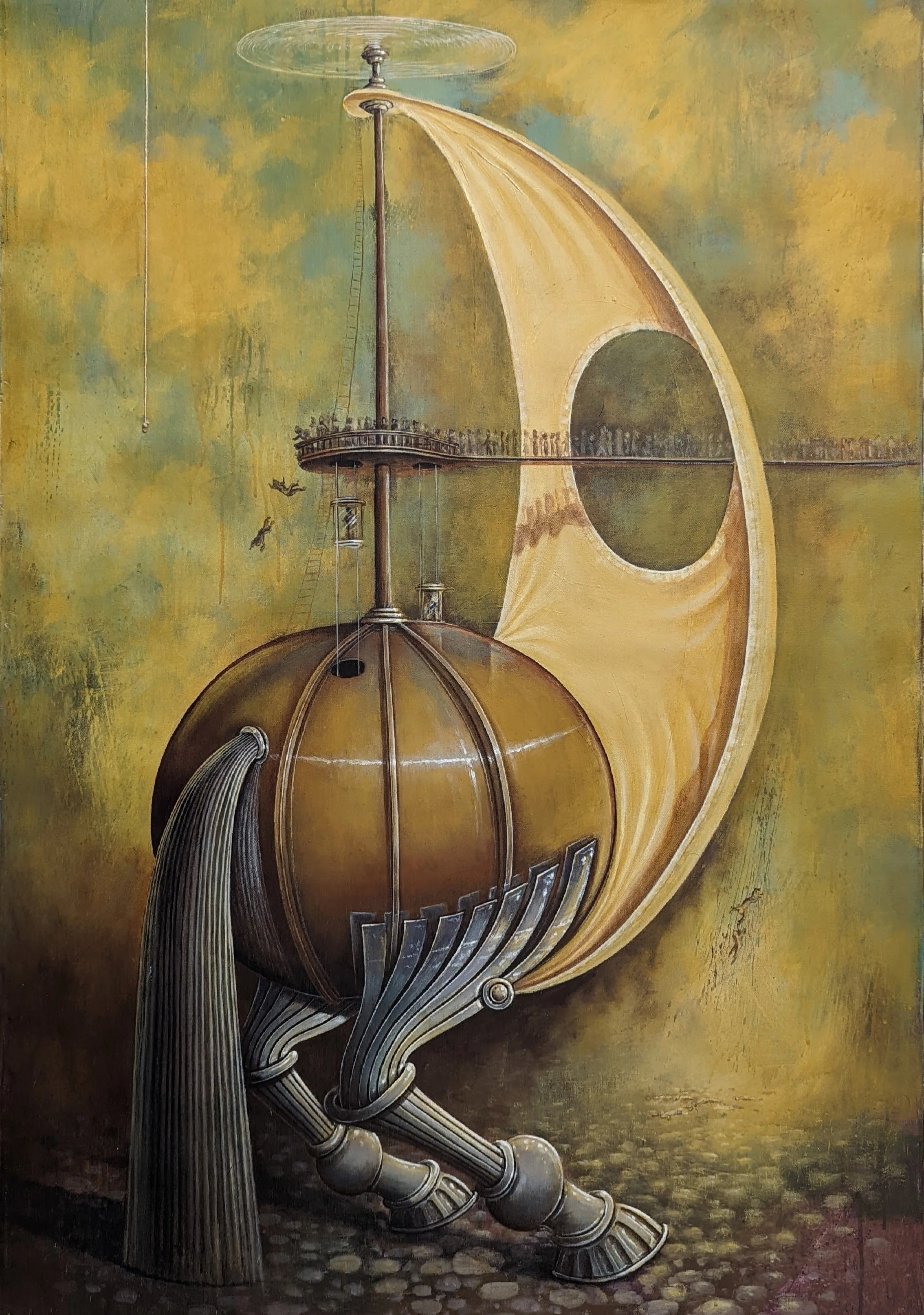 In his earthly horizons and those of parallel universes, Barea expresses the insistent human desire to seek. Traveling on otherworldly vessels sewn directly into painted canvas, his protagonists navigate the search of what it means to be oneself.